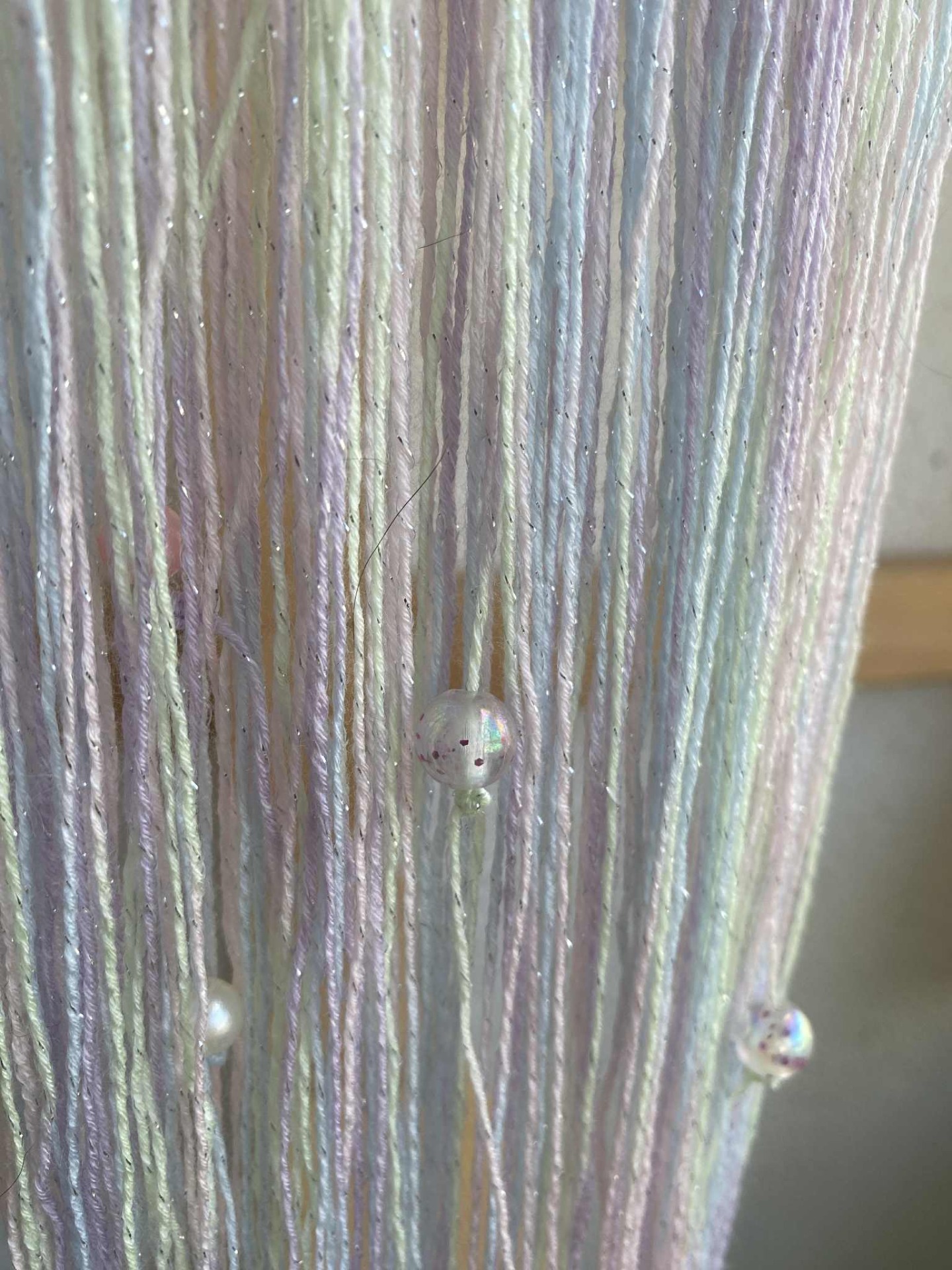 Materiál: bavlněná příze, korálky, dřevěný kruh