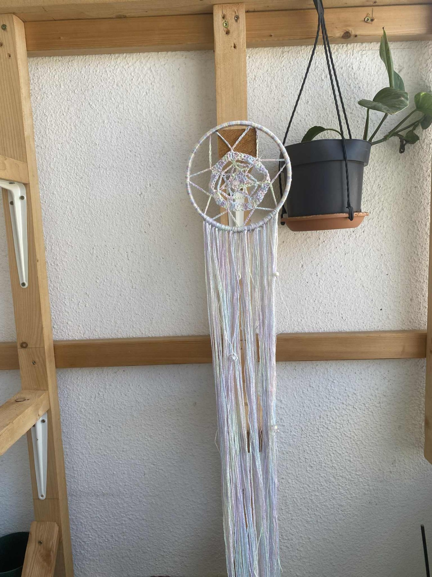 Tento ručně vyrobený lapač snů s růženínem ve středu vnese do vašeho domova harmonii a klid. Zavěste jej nad postel, do obývacího pokoje nebo na terasu – bude nejen půvabnou dekorací, ale i ochráncem dobrého spánku a pozitivní energie.