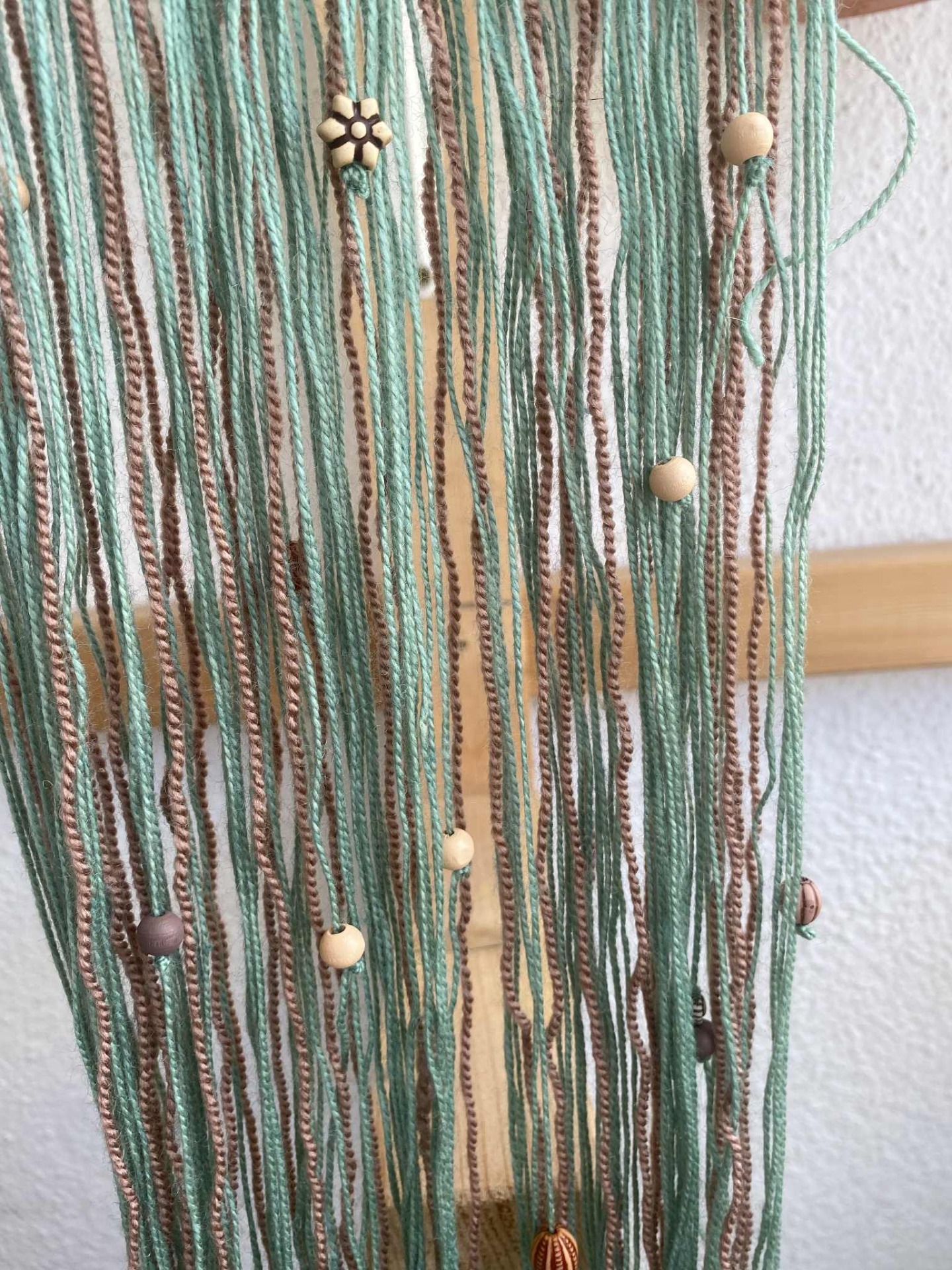 Materiál: bavlněná příze, korálky, dřevěný kruh