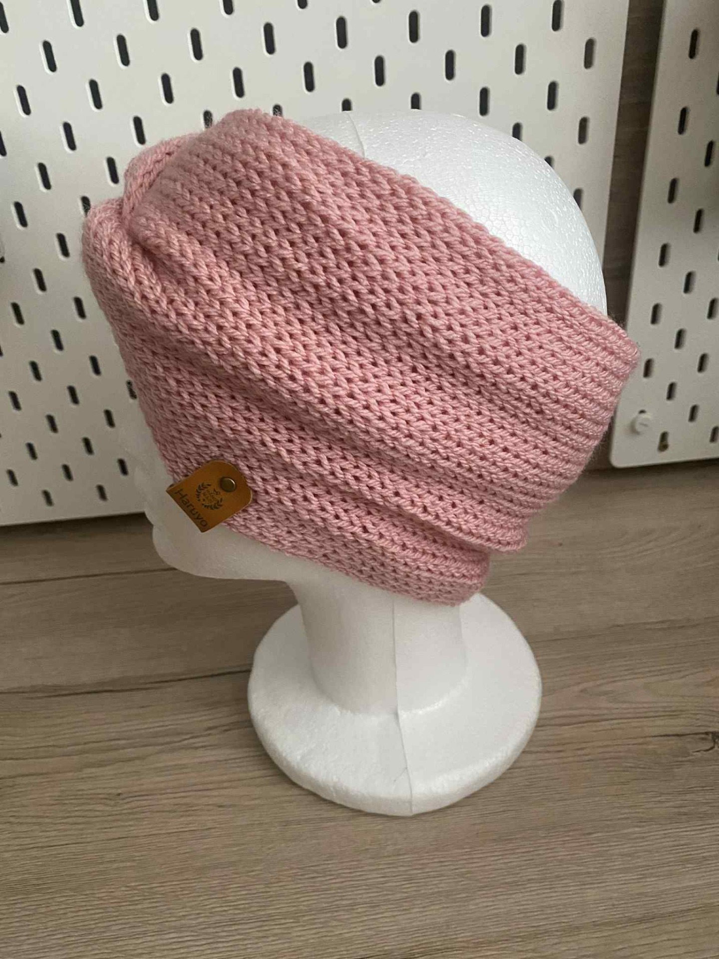 Pletená zimní čelenka Baby pink